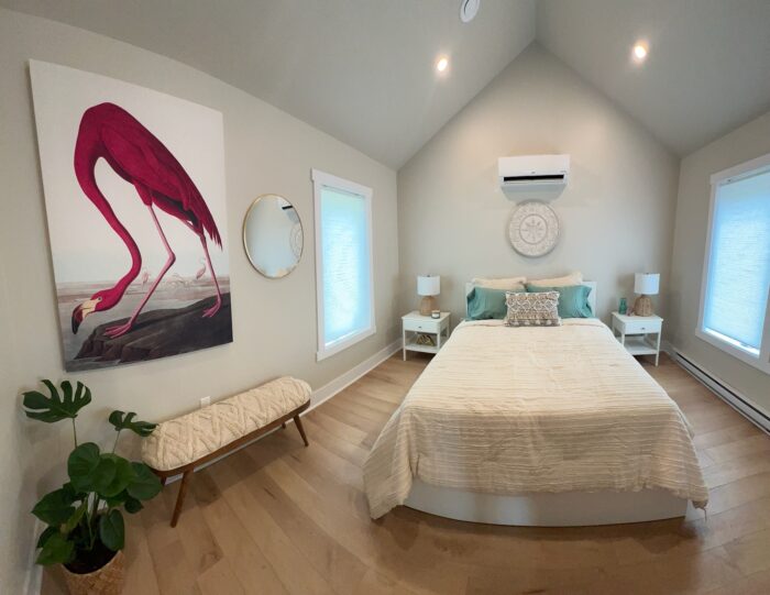 The interior is thoughtfully designed to make your stay comfortable. A perfect balance of modern comfort with a rustic charm, SereneScape is meticulously crafted for your pristine experience. Your own private deck has a hot tub, where you can enjoy with a view of the lake.